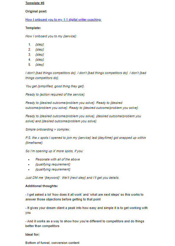 Twice a week, I’ll send you proven social media templates that:👉 Are pre-written and ready to customize👉 Follow the exact 6-Figure Content Strategy outlined in the book👉 Include TOF, MOF, and BOF post templates👉 Come with real examples of how I (or other writers) have used them to land clients and grow their audience